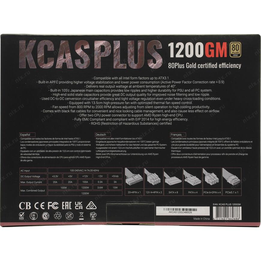 Сертифицирован на стандарт 80 PLUS Gold |