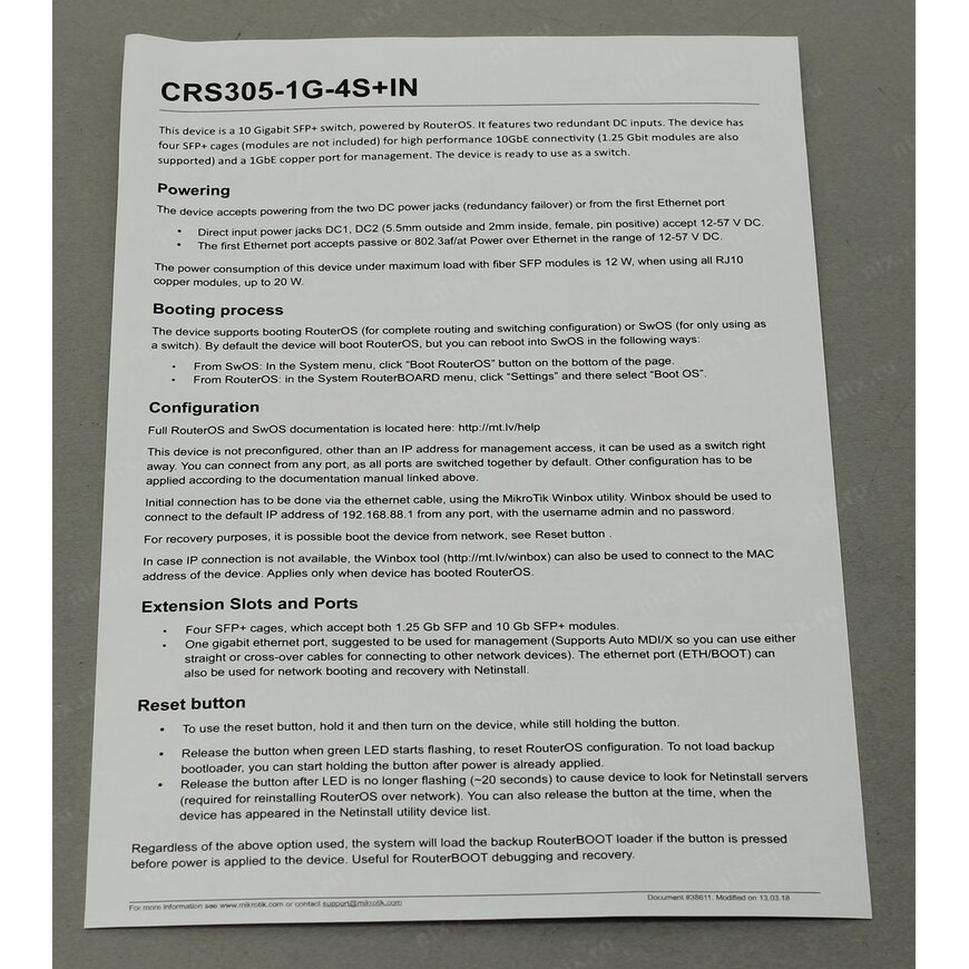 | Операционная система | SWOS или RouterOS v6, уровень лицензии 5 |