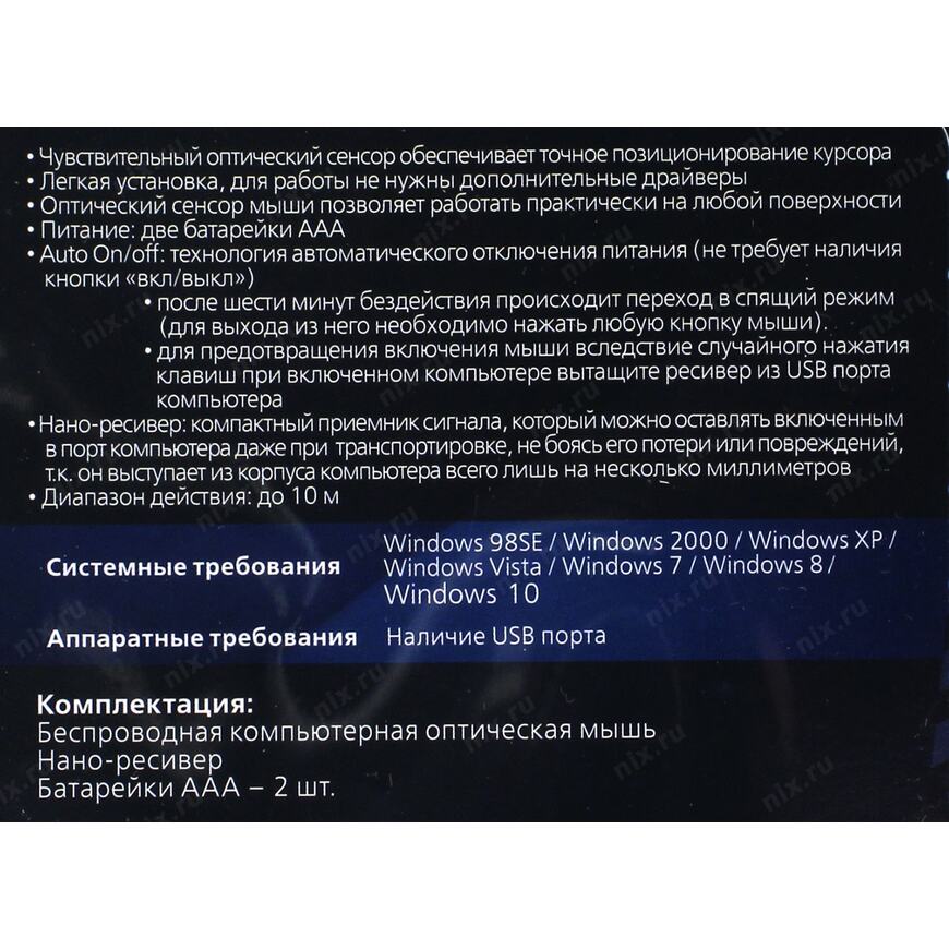 | Комплект поставки | 2 батарейки типа AAA, USB-приемник |