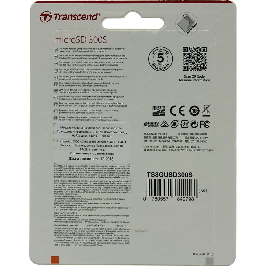 Карта памяти Transcend 8GB Class10 microSD w/o adapter