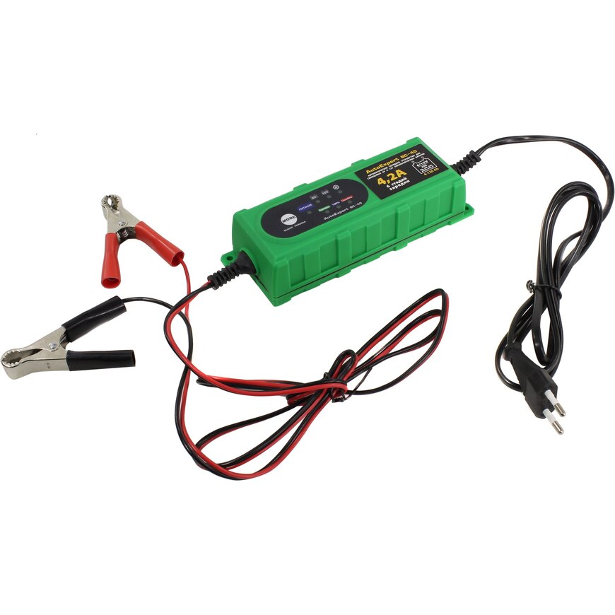 | Описание | Полностью автоматическое зарядное устройство, предназначенное для зарядки автомобильных и мотоциклетных аккумуляторов 12 или 6 Вольт ёмкостью от 4 до 120 Ач. Есть режим зарядки при низкой температуре. Отдельный индикатор полной зарядки. Подходит для свинцовых аккумуляторов типа Pb, MF, GEL,AGM, VRLA. Зарядка проходит в 6 стадий |
