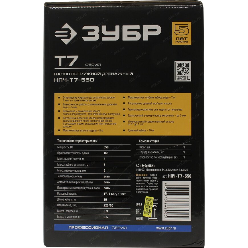 | Безопасность | Автоматическое включение и выключение (поплавковый выключатель), термопредохранитель для защиты двигателя. |