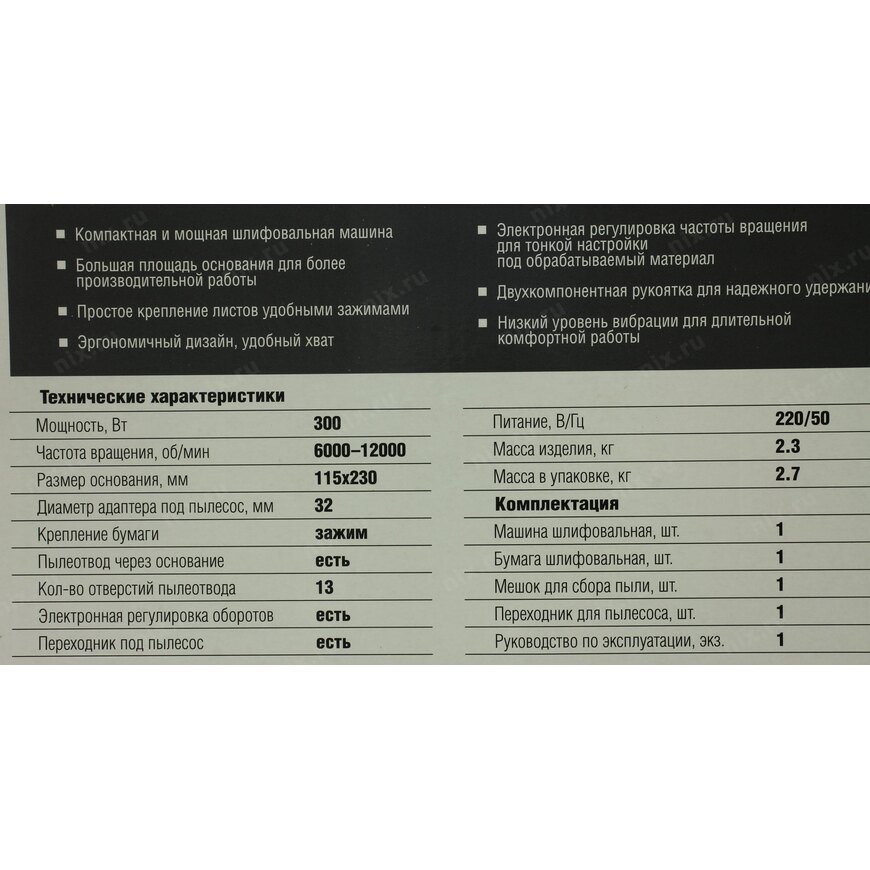 | Рабочая поверхность | Шлифовальная поверхность 115 x 230 мм, размер шлифовального листа 115 x 280 мм. |