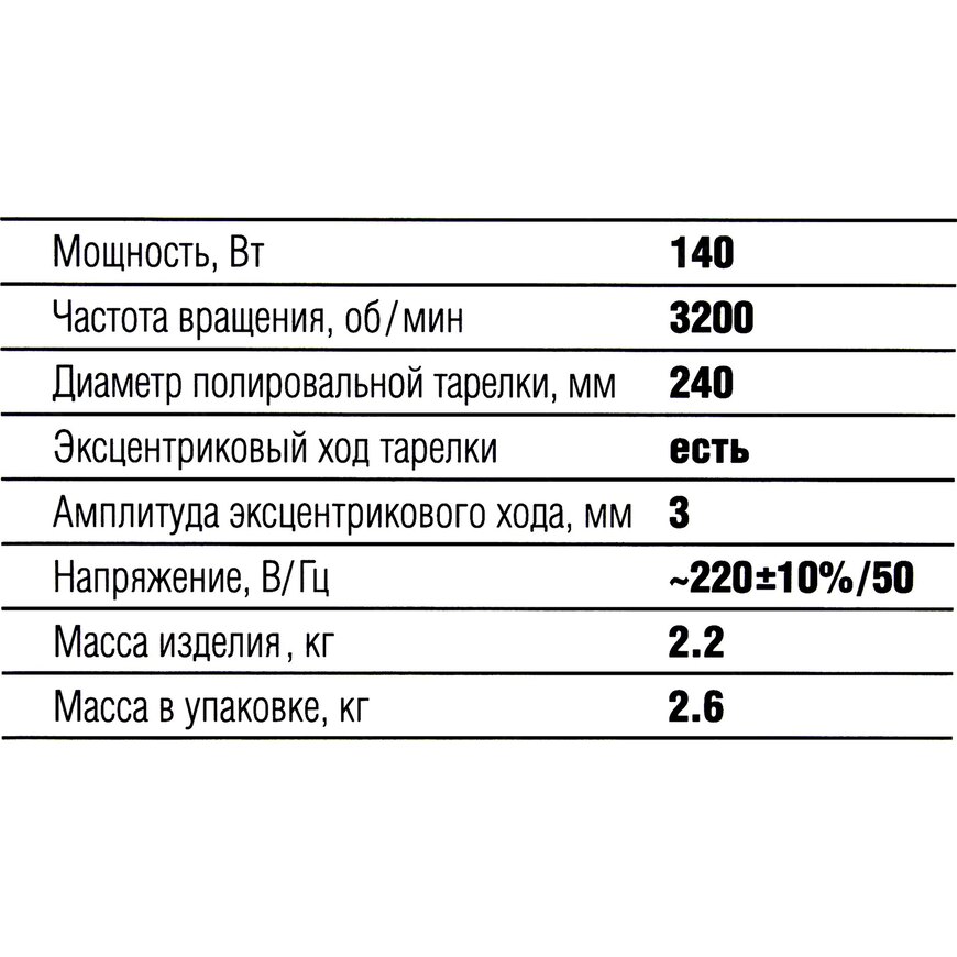 | Диаметр диска | 240 мм (Тарельчатый шлифовальный диск) |