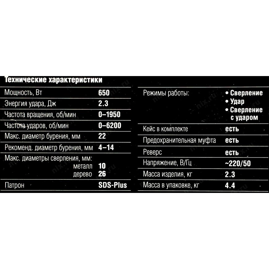 | Комплект поставки | Боковая рукоятка, Ограничитель глубины сверления, Смазка для хвостовика бура, Чемодан |