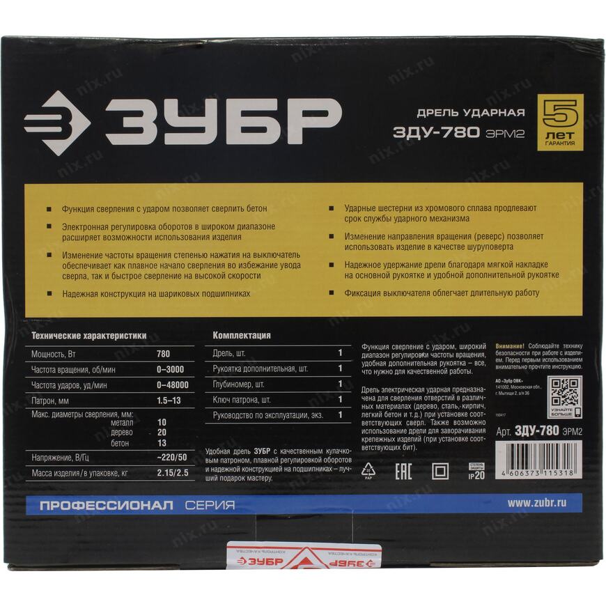 | Комплект поставки | Боковая рукоятка, Ключ для затяжки патрона, Ограничитель глубины сверления |