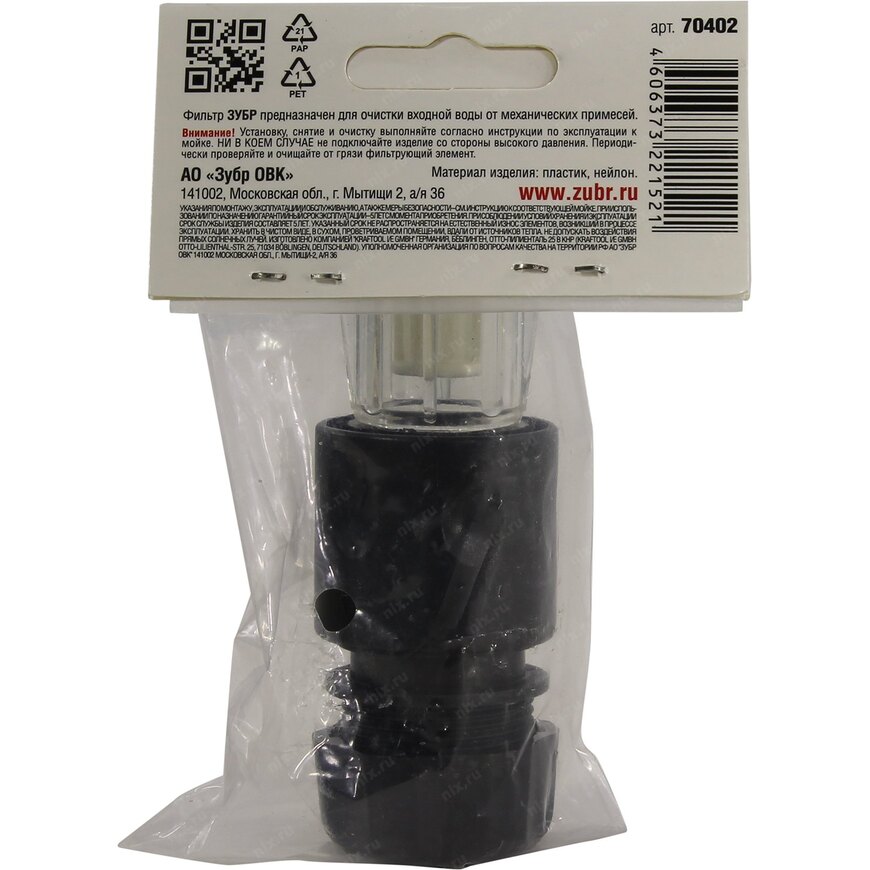 | Описание | Фильтр для минимоек Зубр с быстроразъемным адаптером 1.2" - 3/4" в комплекте. Для удобства очистки предусмотрена разборная конструкция. |