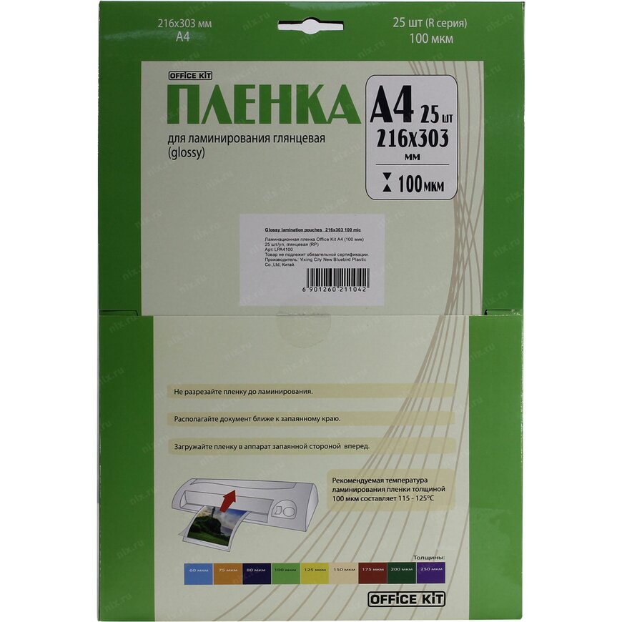 Пакет для ламинирования Office Kit LPA4100 A4 (210 x 297 мм)