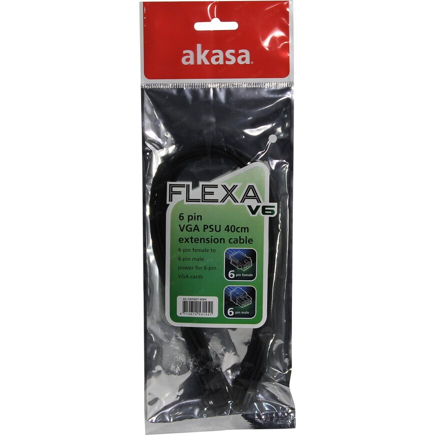 Удлинитель питания для видеокарты Akasa AK-CBPW07-40BK Черный Черный 0.4 м.