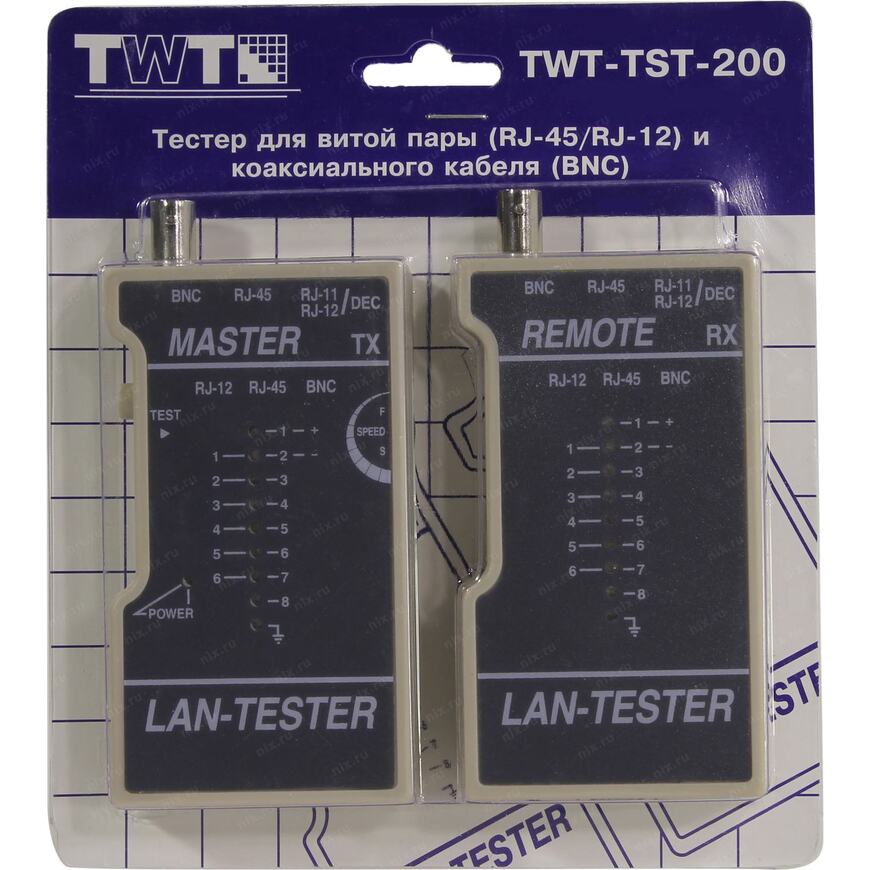 Тестер позволяет тестировать кабели типа витая пара (UTP и STP), имеющие стандартные коннекторы RJ-45, RJ-12, RJ-11, а также коаксиальный кабель с разъемами BNC