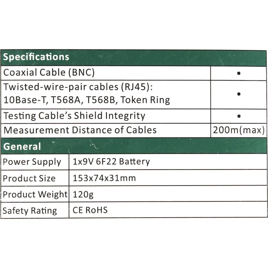 | Тестирование кабеля типа UTP (Cat 5, 5e, 6) | Да |