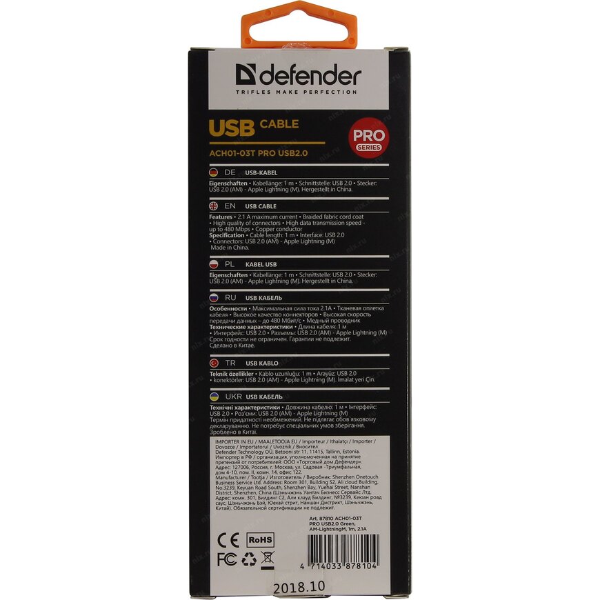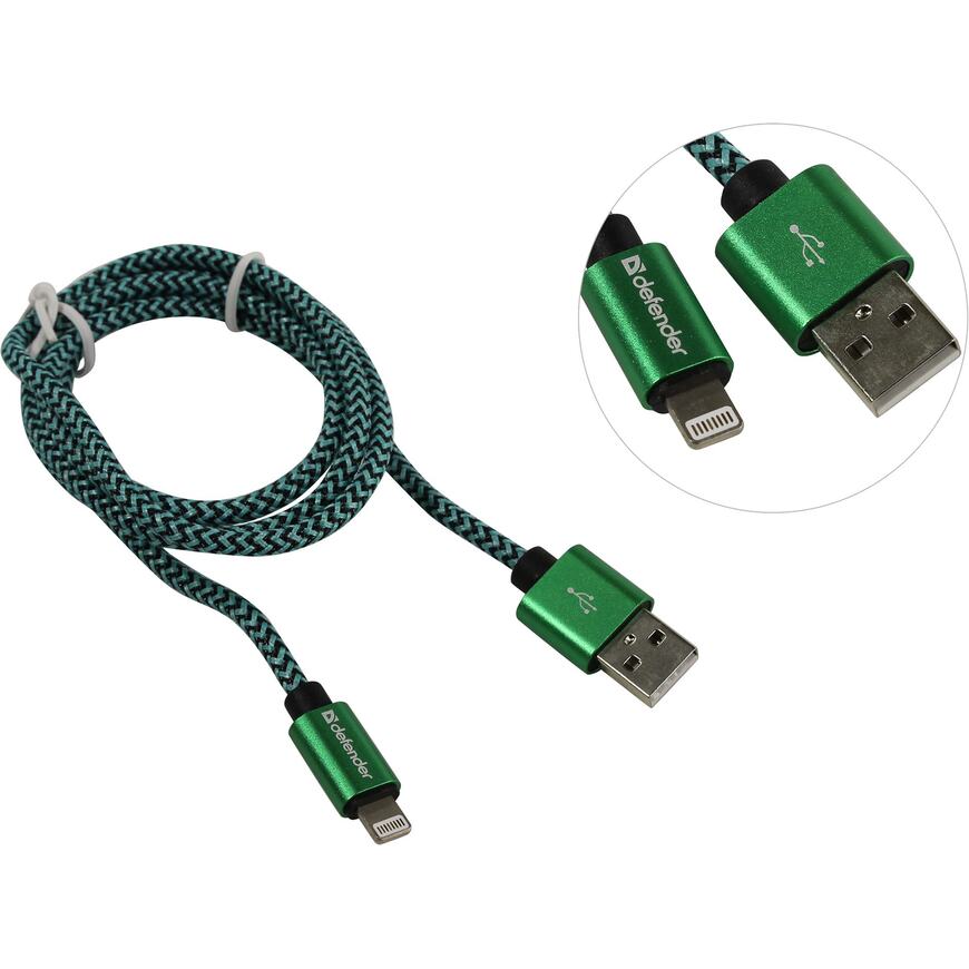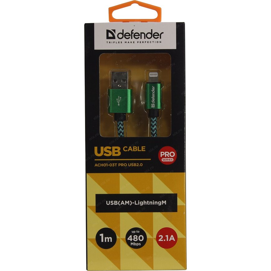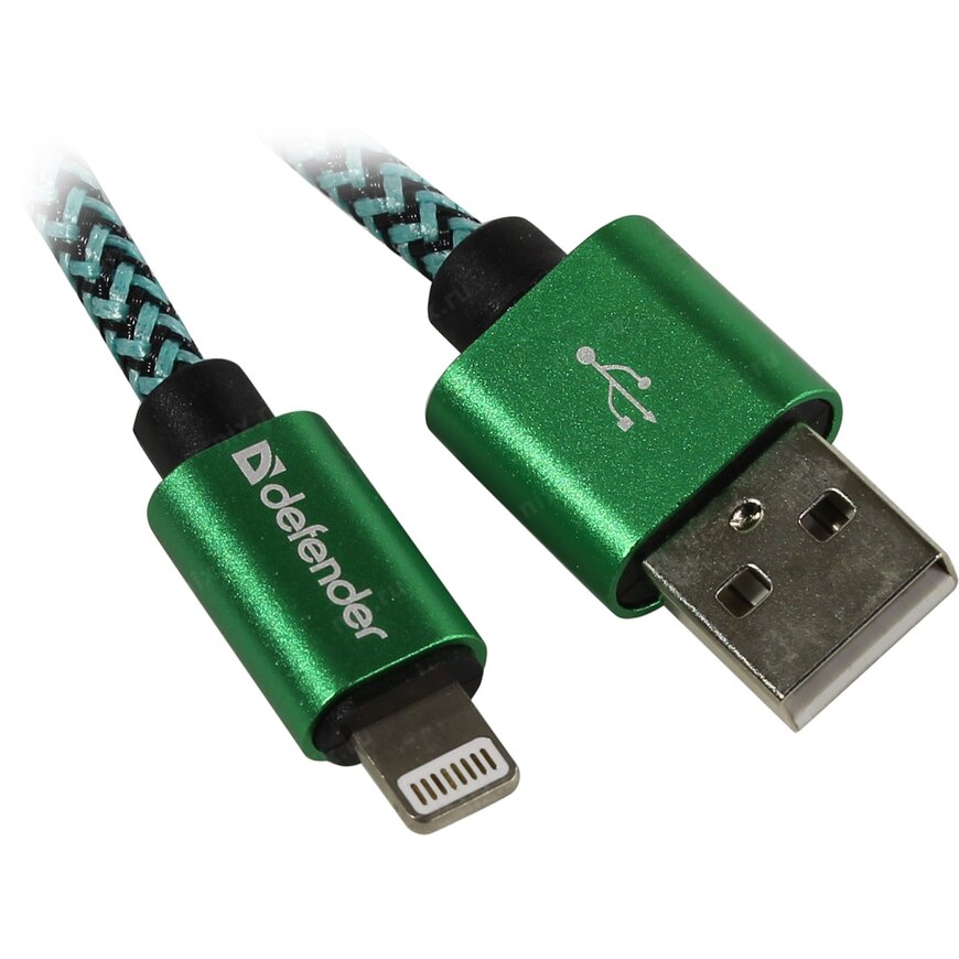 Кабель Lightning Defender ACH01-03T PRO кабель в оплетке Черный, Зеленый 1 м.