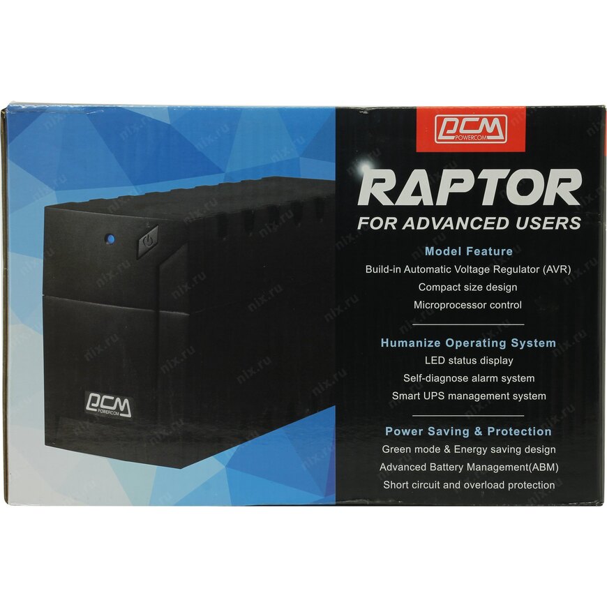 Источник бесперебойного питания Powercom Raptor, Line-Interactive, 1000VA / 600W, Tower, Schuko, USB