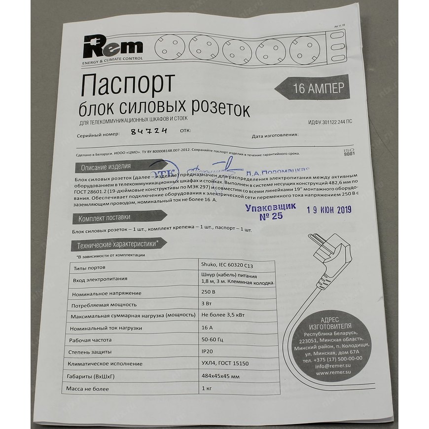 | Описание | Блок розеток для питания оборудования в телекоммуникационных шкафах и стойках |