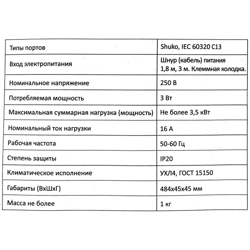| Кол-во выходных розеток | 8 розеток евростандарт с заземлением |