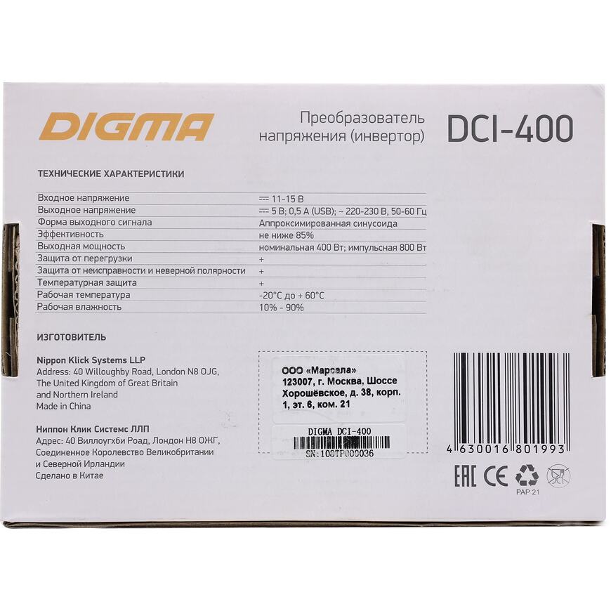 | Описание | Преобразователь 12 вольт постоянного тока в 230 вольт переменного тока. |