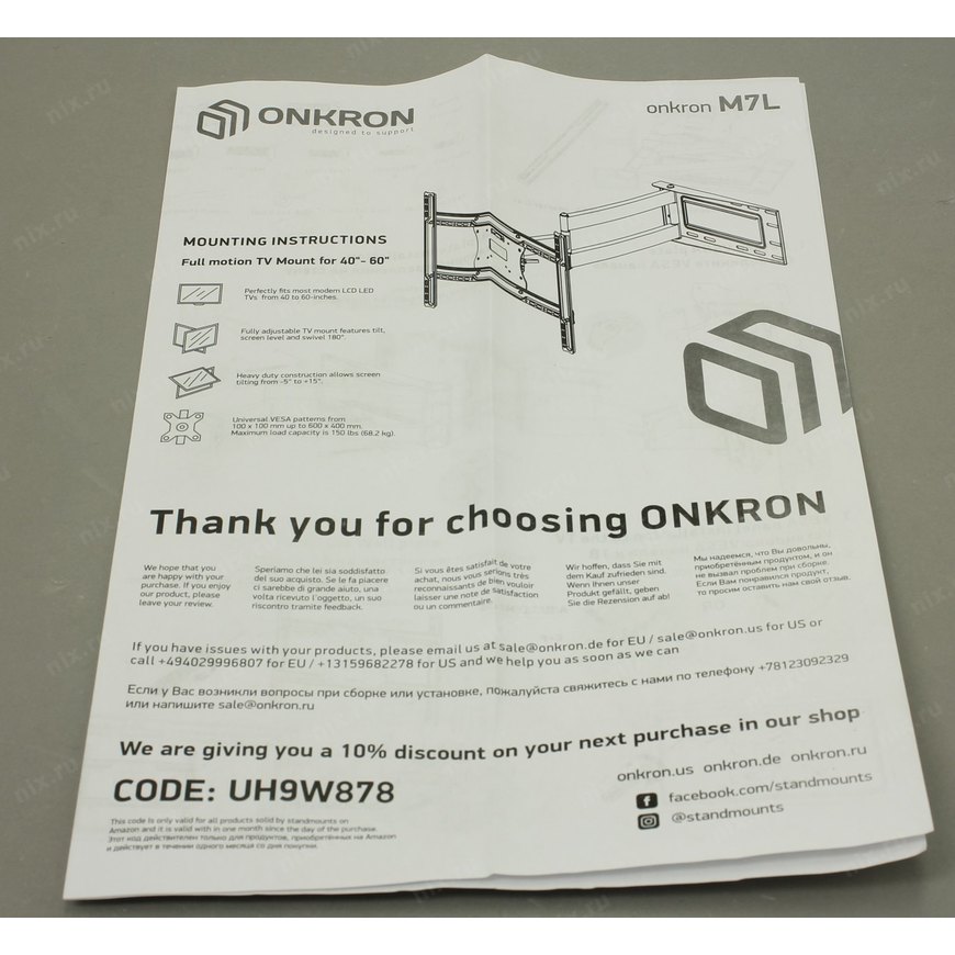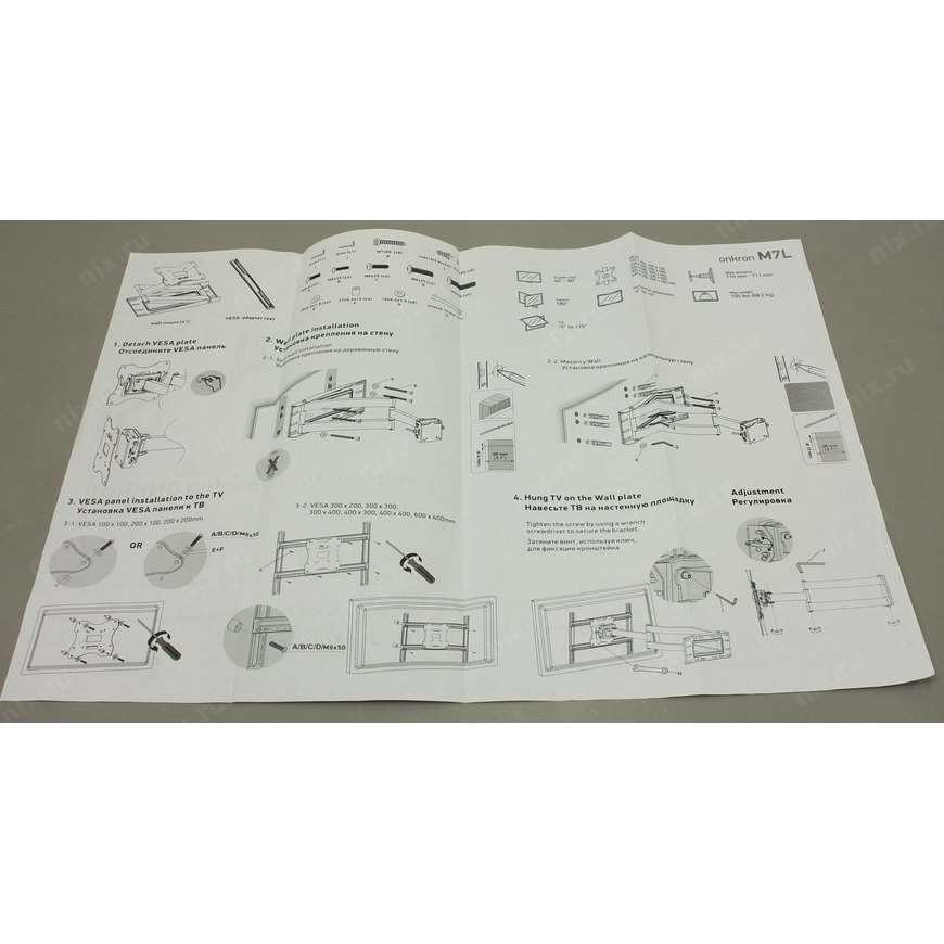 | Описание | Настенное крепление для телевизоров с диагональю от 40 до 60 дюймов и весом не более 68.2 кг |