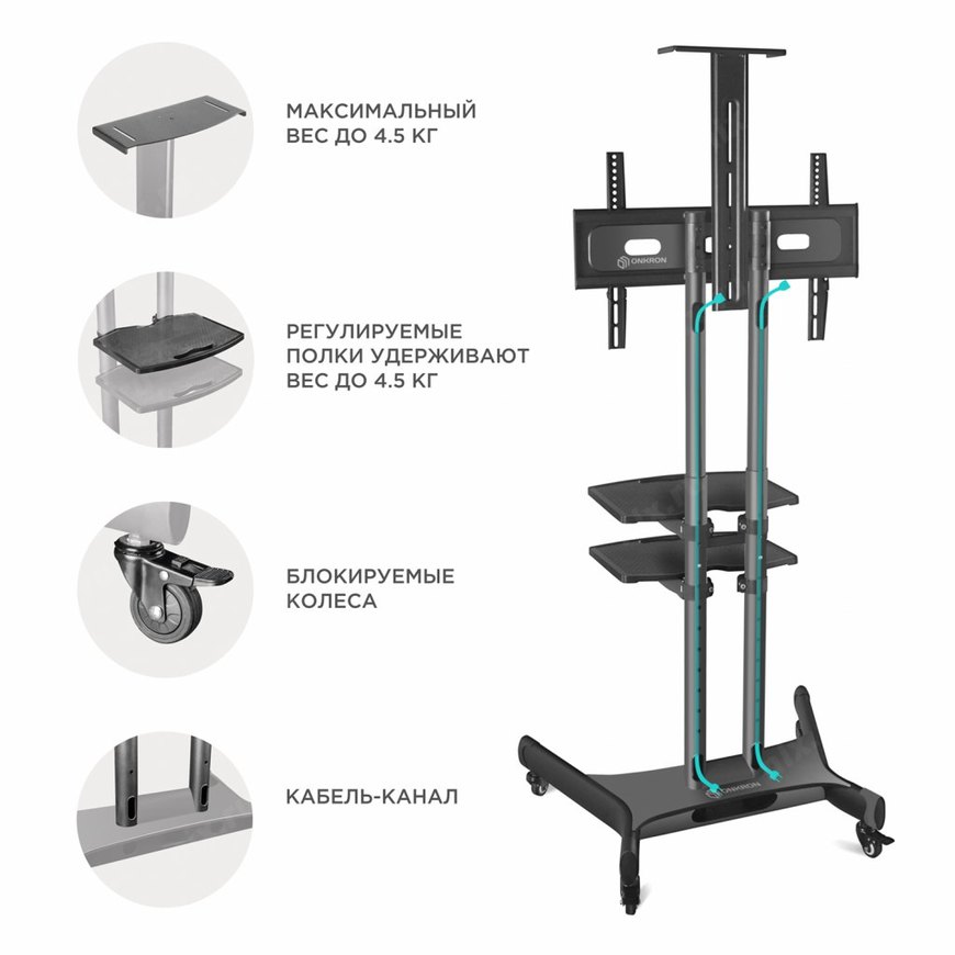 | Описание | Мобильная стойка для телевизора с диагональю от 40 до 70 дюймов и весом не более 45.5 кг |