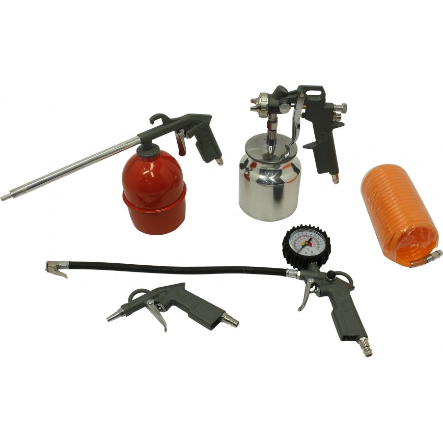 | Комплект поставки | Колеса, опоры, спиральный шланг, краскораспылитель, пистолет для продувки, пистолет для накачки шин, пульверизатор. |