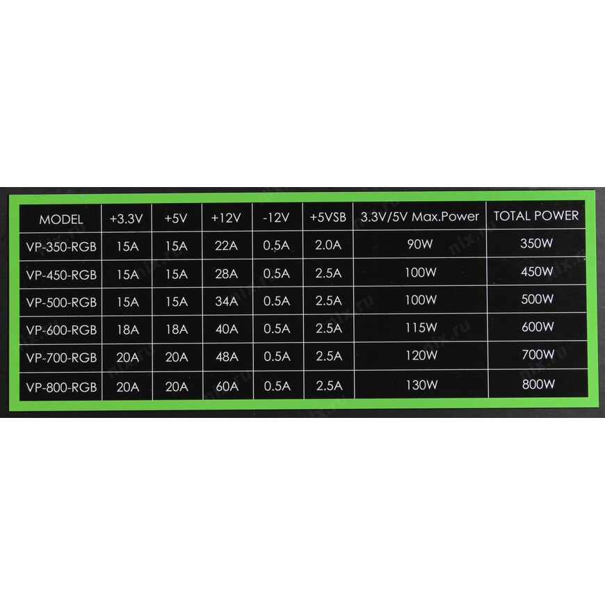 +3.3V - 15A, +5V - 15A, +12V - 34A, +5VSB - 2.5A, -12V - 0.5A; Комбинированная нагрузка: +3.3V&+5V - 100 Вт