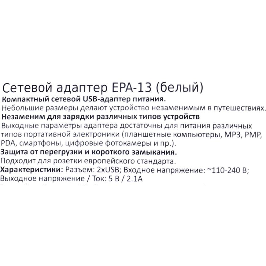 | Описание | Универсальный сетевой адаптер с двумя USB портами. Адаптер позволяет осуществлять питание двух USB устройств одновременно. Подходит для зарядки планшетов, мобильных телефонов, смартфонов, а также любых других устройств с возможностью зарядки по USB (5В / до 2.1 А) |
