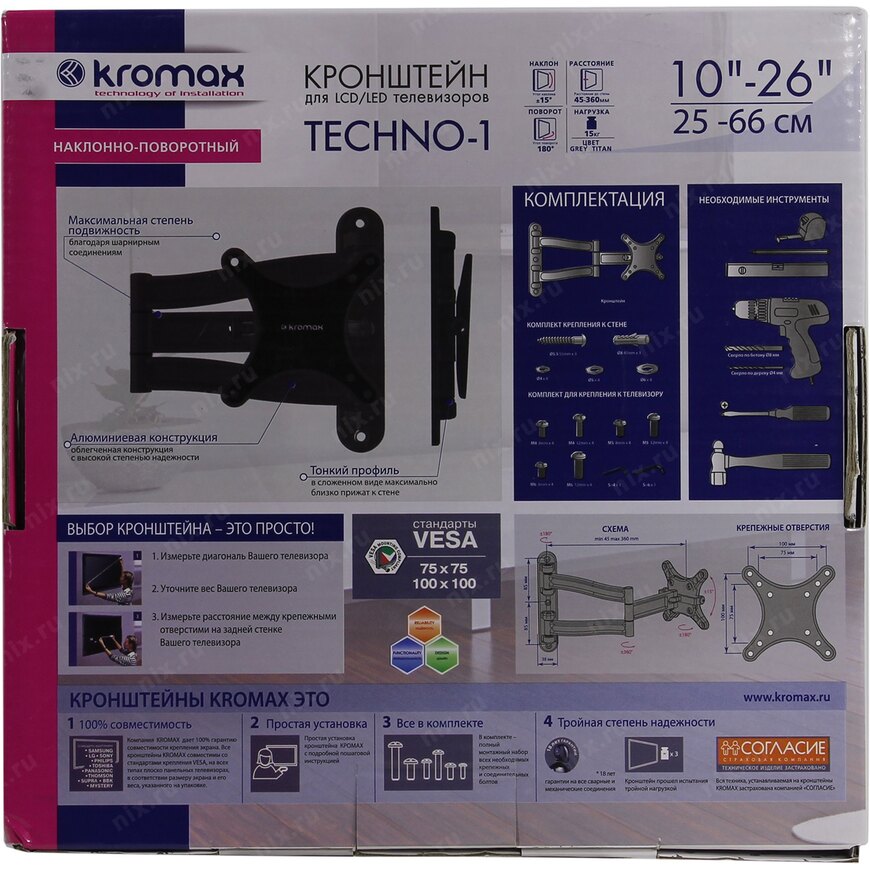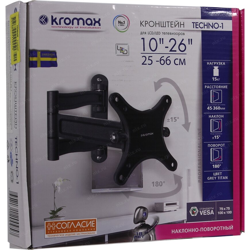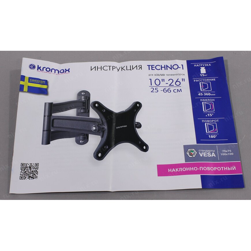 Настенное крепление для телевизоров с диагональю от 10 до 26 дюймов и весом не более 15 кг