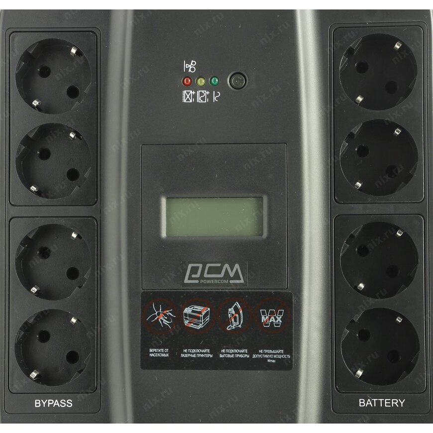ИБП автоматически отключается, если перегрузка превышает 110% от максимальной мощности в течение 60 секунд или 130% в течение 3 секунд