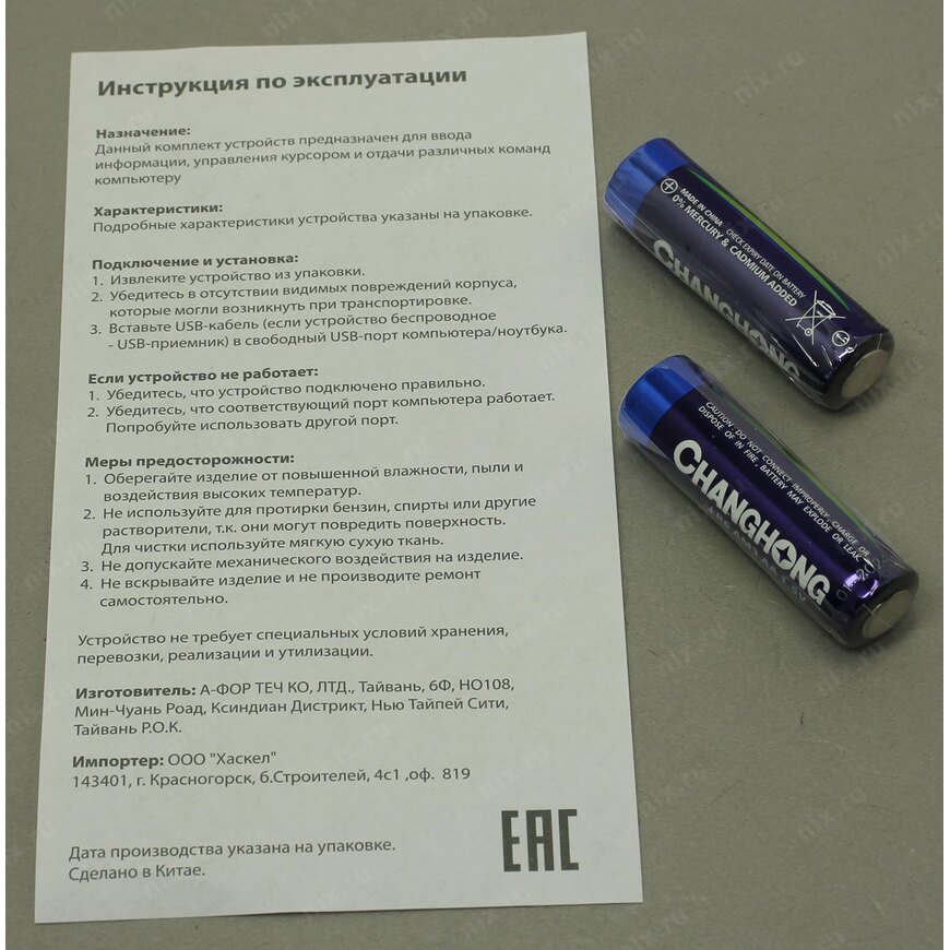 | Комплект поставки | 2 батарейки типа AA, USB-приемник, USB-удлинитель |