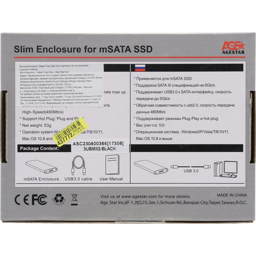 Внешний корпус для mSATA устройств AgeStar 3UBMS2-Black
