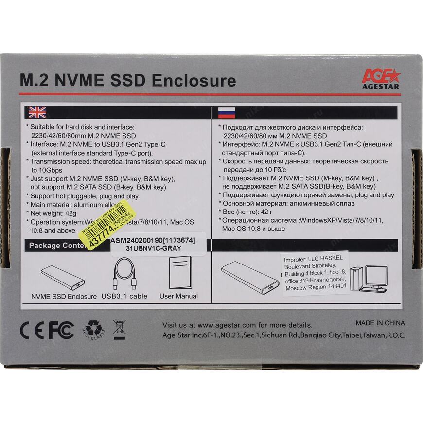 Внешний корпус для M.2 PCI-E устройств AgeStar 31UBNV1C