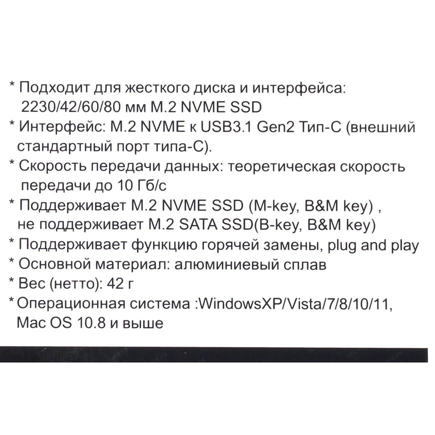 Внешний контейнер для M.2 накопителей с ключом M-key формата 2230/2242/2260/2280; подключается к порту USB.