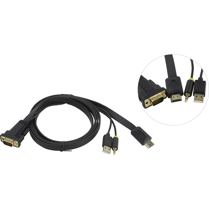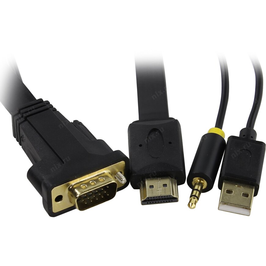 | Разъемы кабеля или переходника | HDMI 19M, USB Type A "папа", VGA "папа", миниджек 3.5 мм "папа" (male, M) |