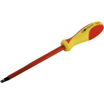 Отвертка электроизолированная с прямым шлицем (SLOTTED) и намагниченной рабочей частью. Ручка эргономичной формы. Отвертка может выдерживать напряжение до 1000 В