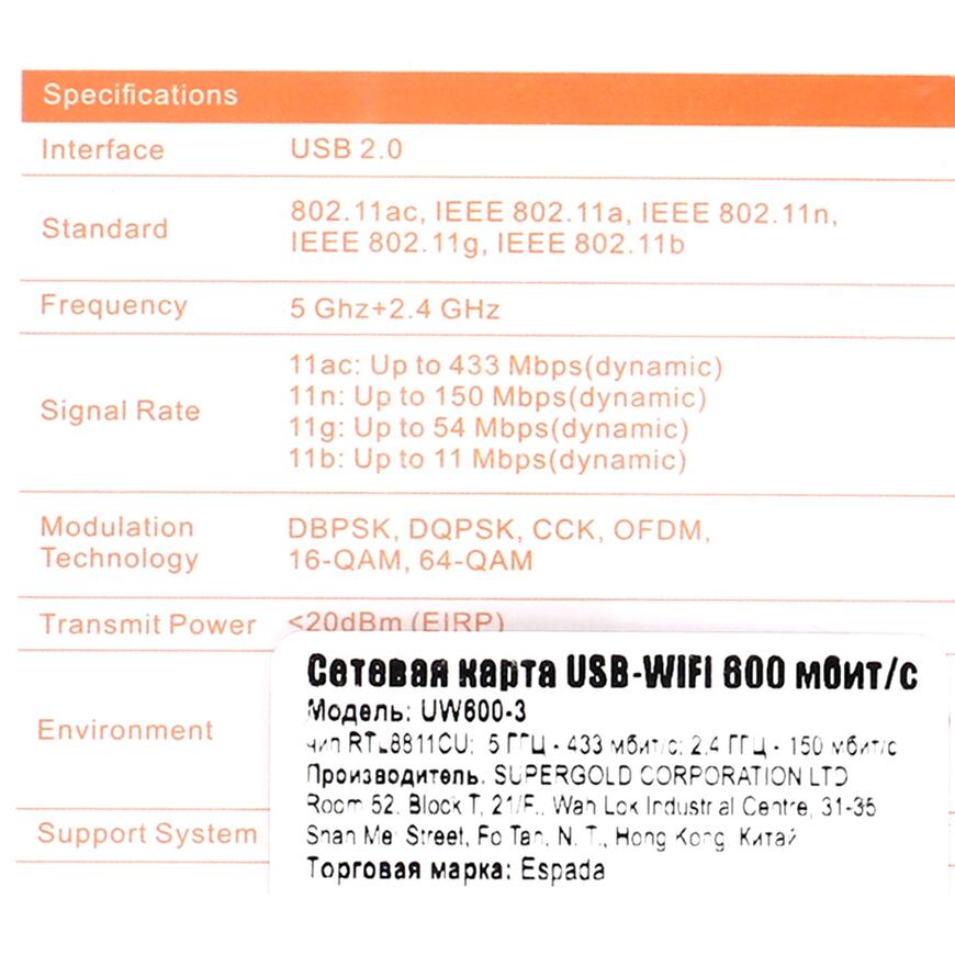 | Чип | MT7610U |
