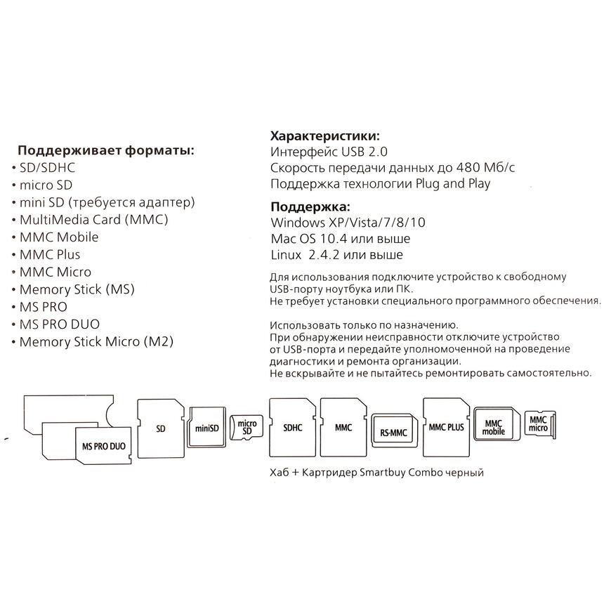 SDXC, SDHC, SD, microSD, MMC, MS, M2