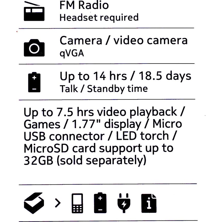 | Описание | Простой надежный телефон с камерой, слотом для карт пямяти, втроенными играми и корпусом из долговечного поликарбоната |