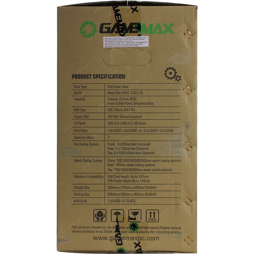 Корпус Miditower Gamemax Black Hole ATX без БП с окном