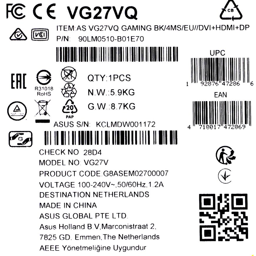 | Модель | VG27VQ |