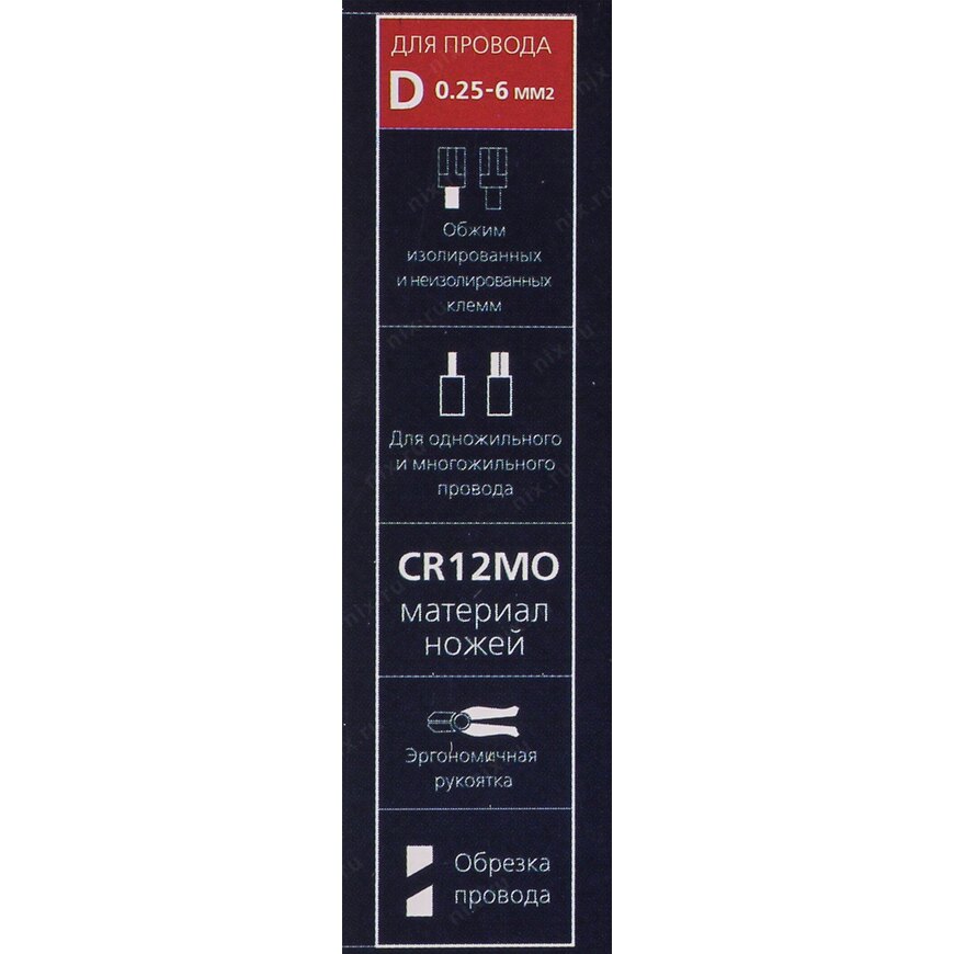Подходит для обрезки кабеля; Возможно использование в качестве кримпера для обжима изолированных и неизолированных клемм