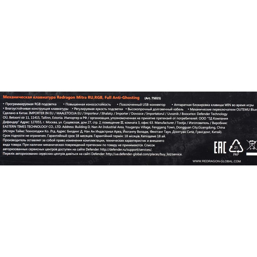| Тип переключателей механической клавиатуры | Outemu Blue |