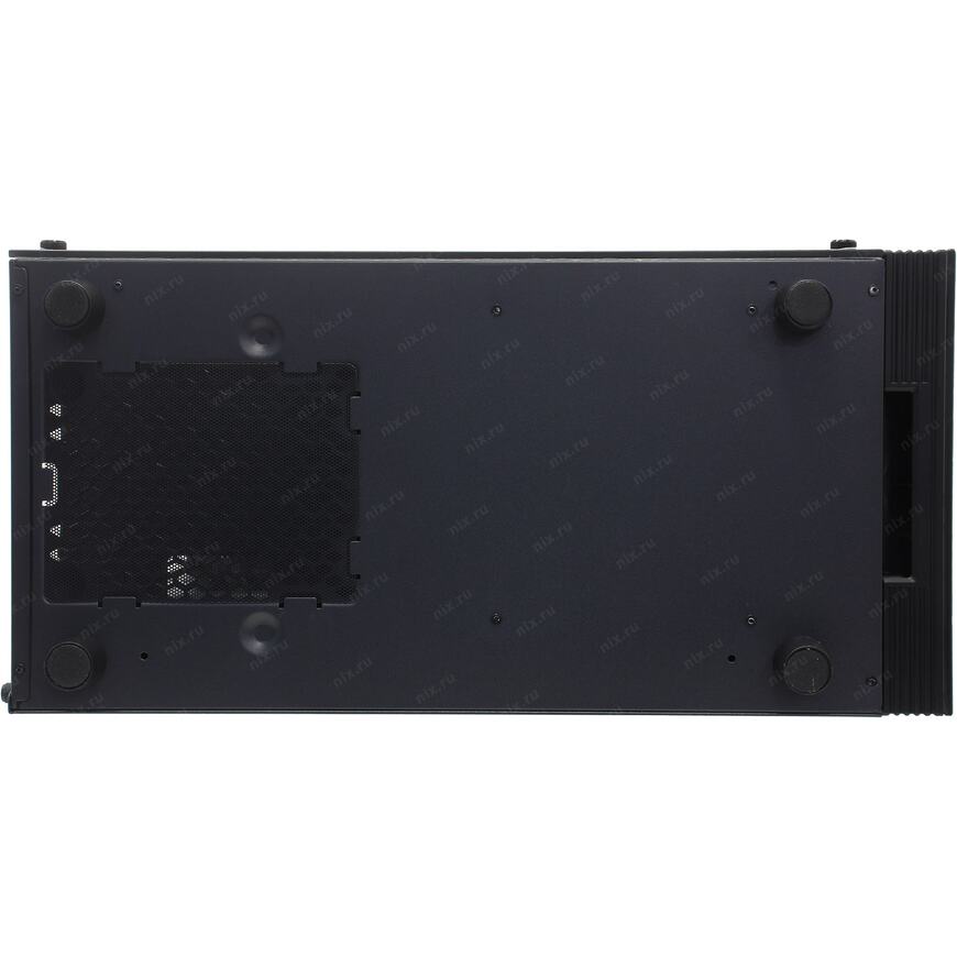 Снизу, с забором воздуха через фильтр снаружи корпуса, что обеспечивает лучшее охлаждение в системе и малошумность.