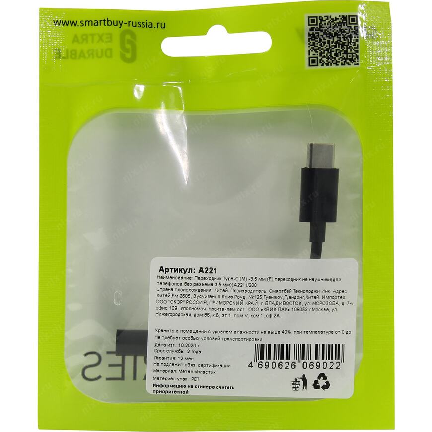 | Вес брутто (измерено в НИКСе) | 0.006 кг |