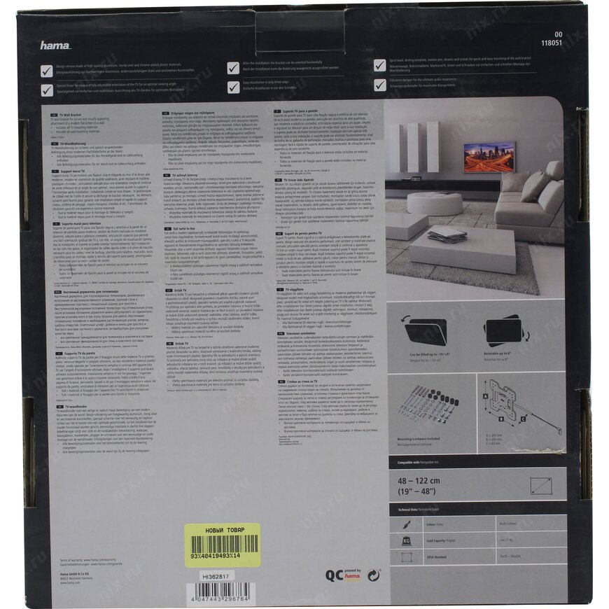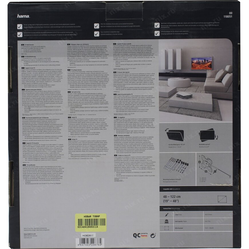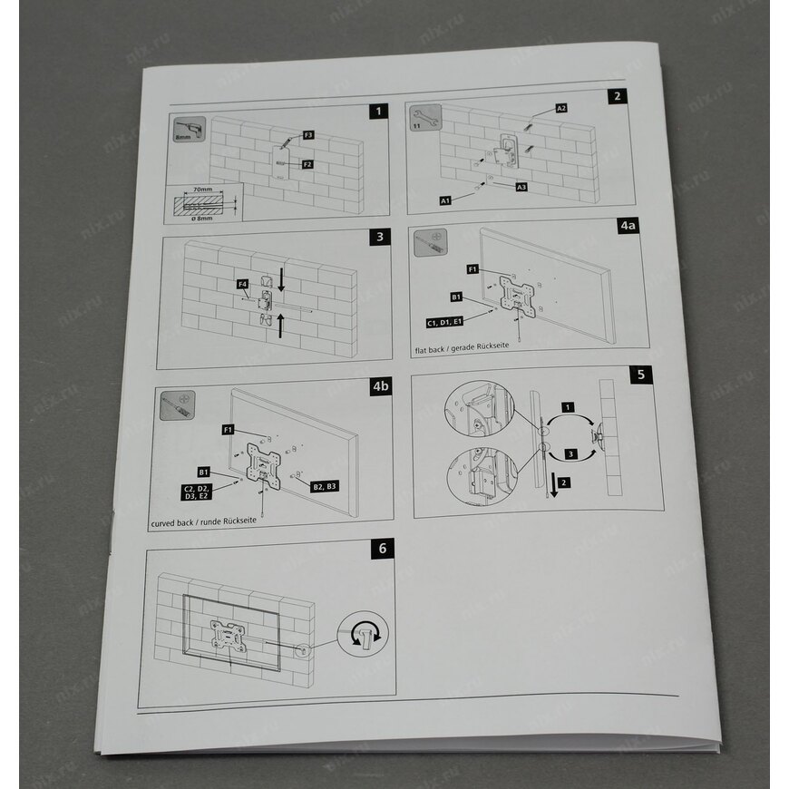 | Описание | Настенное крепление для телевизоров с диагональю от 19 до 48 дюймов и весом не более 25 кг |
