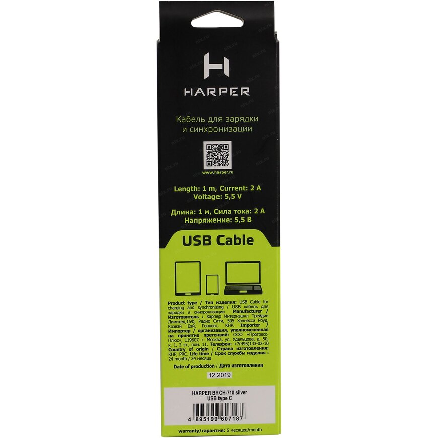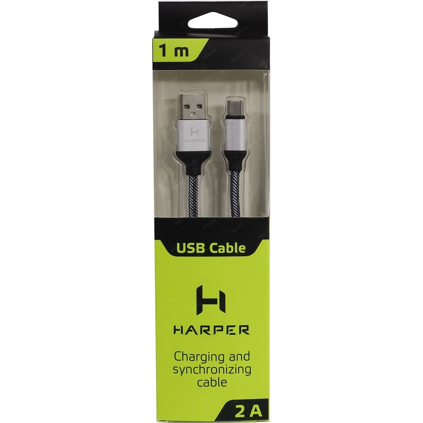 HARPER BRCH-710 кабель в оплетке Черный, Серебристый 1 м. USB 2.0 A -> Type C