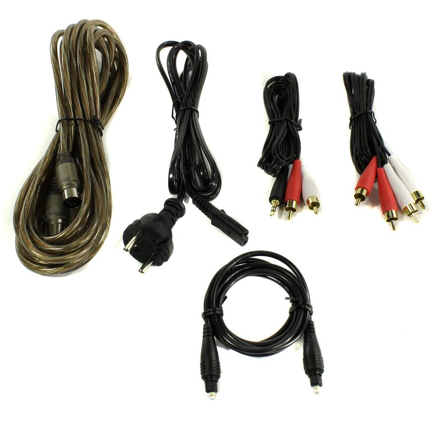 | Комплект поставки | Аудиокабель 2xRCA - 2xRCA, аудиокабель миниджек - 2xRCA, кабель питания, оптический цифровой аудиокабель |