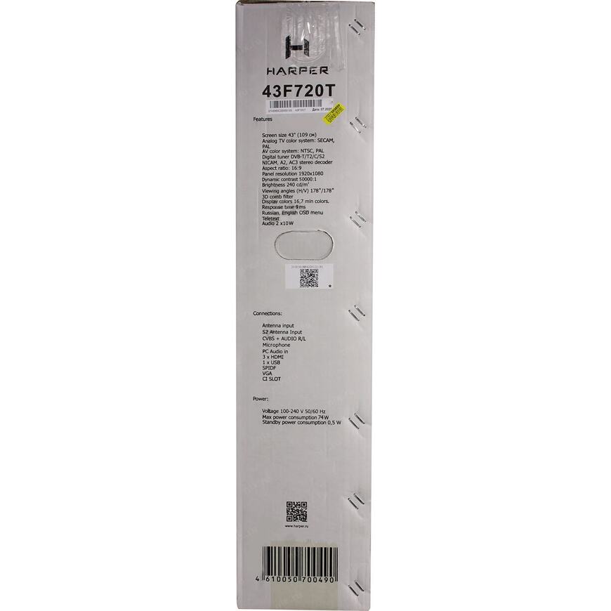 74 Вт - максимальное; 0.5 Вт - в режиме ожидания