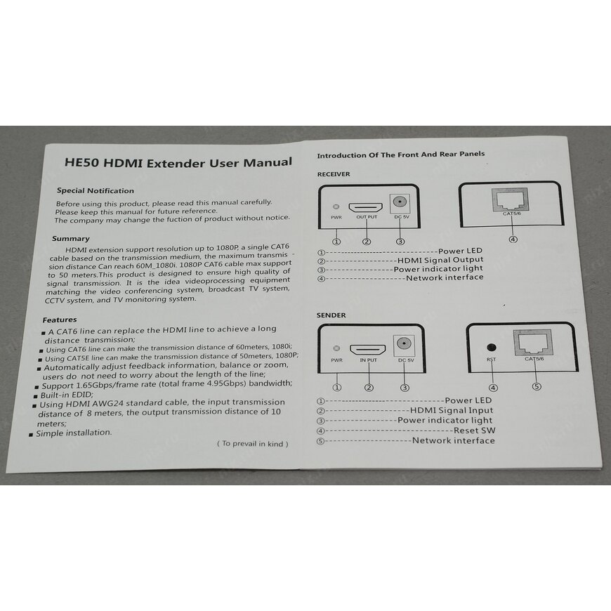 | Описание | Активное (питание от БП) устройство для передачи сигнала HDMI с максимальным разрешением 1920x1080 на расстояние до 50 метров через сетевой кабель UTP категории 6 |