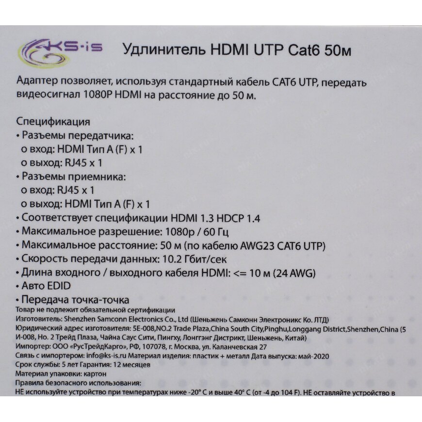 | Тип оборудования | Удлинитель по «витой паре» HDMI -> HDMI |