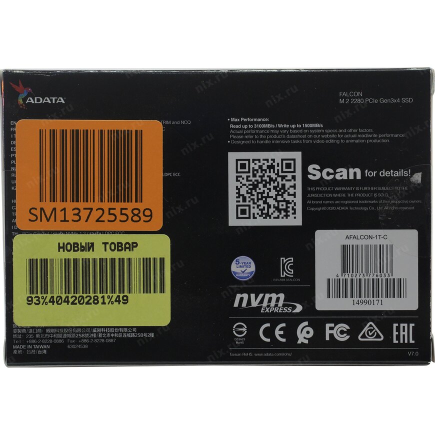 | ПО в комплекте | Бесплатно скачивайте с сайта ADATA SSD ToolBox |