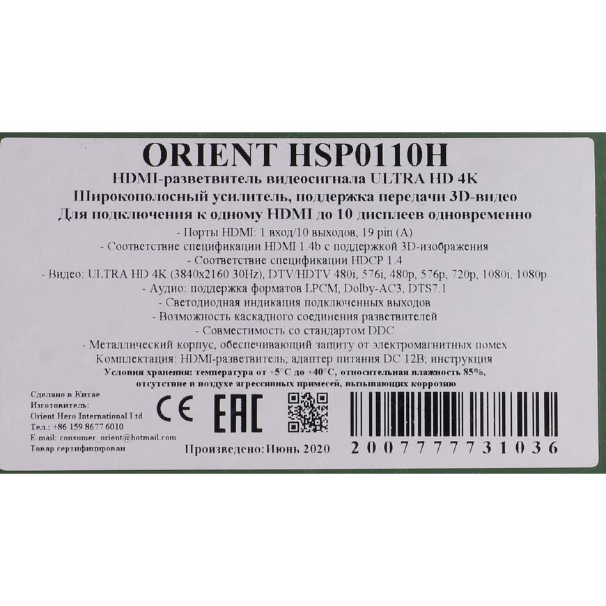 | Порты | Вход HDMI, 10 выходов HDMI |